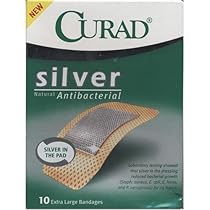 Laboratory testing showed that silver reduced bacterial growth (Staph. aureus E. coli E. hirae and P. aeruginosa) in the dressing for 24 hours. Curad Silver bandage is indicated for first aid to help minor cuts scrapes abrasions lacerations and scalds. Curad Silver bandage is an adhesive bandage with silver added for an antibacterial effect.- New! Silver Natural Antibacterial in an Exta Large Size